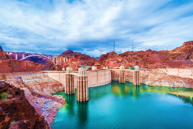- Đập thủy điện Hoover Dam – một trong những đập thủy điện lớn nhất nước Mỹ được khánh thành vào năm 1936, nơi nối liền ba tiểu bang California và Arizona, Nevada với những cột bê tông cao trên 200m.