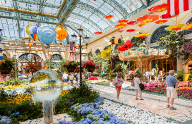 - Vườn hoa địa đàng: Cảnh đẹp và màu sắc của những đóa hoa diễm lệ được xếp đặt công phu, khéo léo mang đặc trưng của từng mùa trong năm. Hàng năm, vườn hoa Bellagio được thay đổi tổng cộng 5 lần vào các mùa Xuân, Hạ, Thu, Đông và Tết Nguyên Đán.