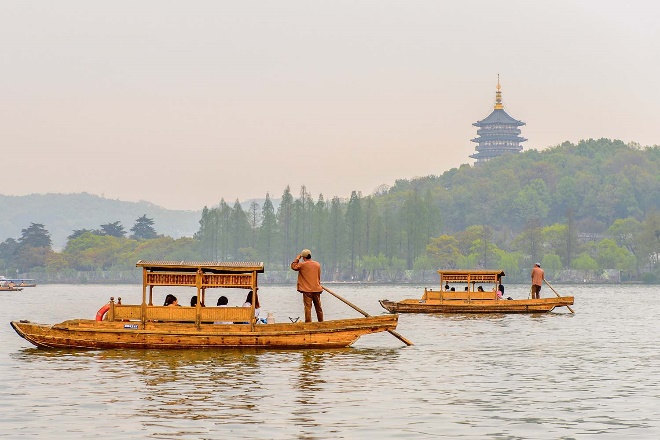 - Du thuyền thưởng ngoạn Tây Hồ một hồ nước ngọt tự nhiên nằm ở phía tây thành phố Hàng Châu, cái đẹp của Tây Hồ thể hiện qua sự khác biệt của bốn mùa trong năm, thời điểm trong ngày và yếu tố nắng mưa của thời tiết. Tên gọi Tam Đàn Ấn Nguyệt cũng từ các khung cảnh này mà nên, với 10 cảnh quan đẹp nhất của Tây Hồ gồm: Liễu lãng văn oanh, Tô đê xuân hiểu, Hoa cảng quan ngư, Nam Bình vãn chung, Lôi Phong tịch chiếu, Bình hồ thu nguyệt, Khúc viện phong hà, Song phong sáp vân, Đọan kiều tàn tuyết…