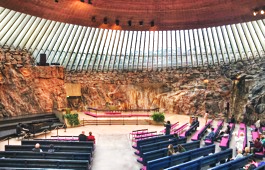 - Nhà thờ đá Temppeliaukio Rock Church (tham quan bên ngoài ) có kết cấu vách đá, tảng đá, kính,… độc đáo